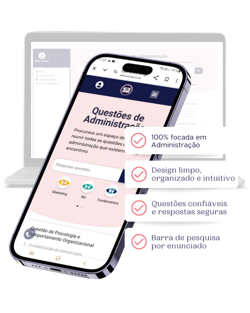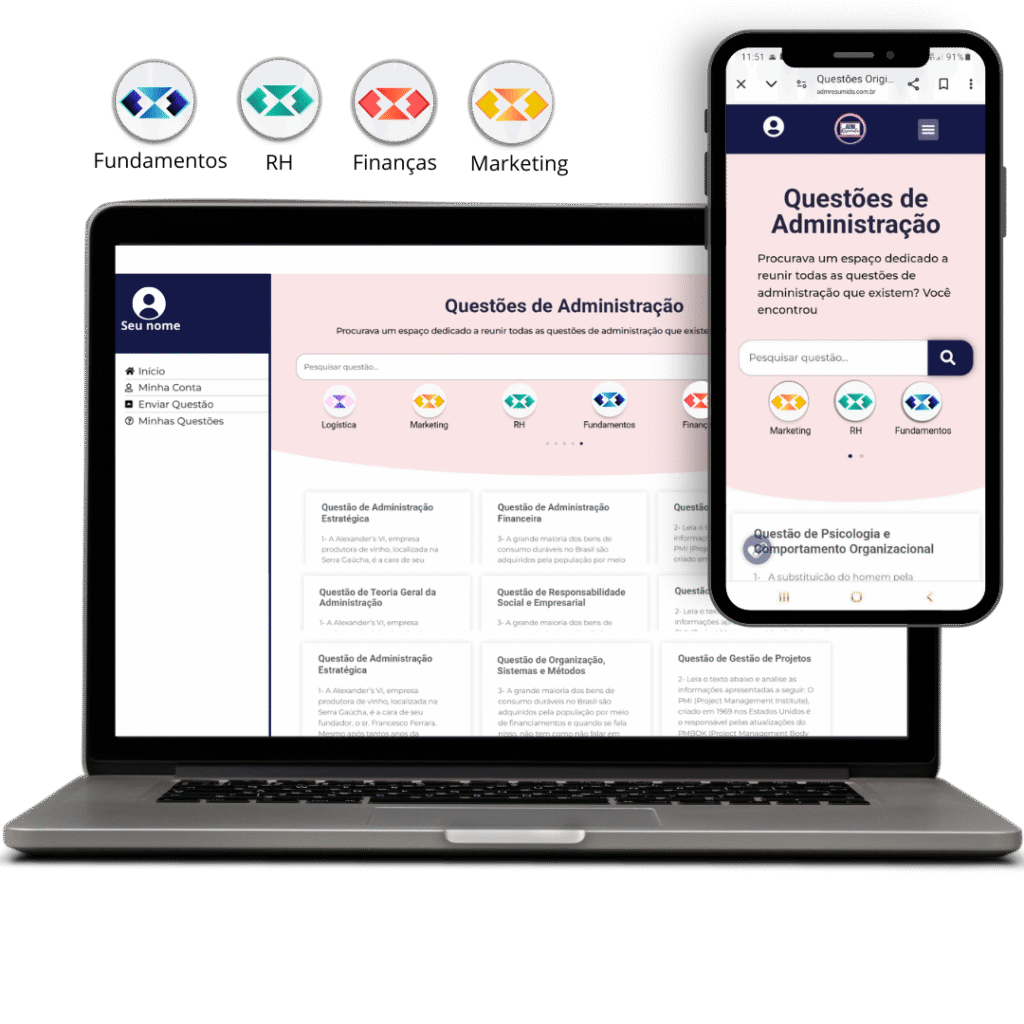 Tenha Acesso a Todas as Questões de Administração em Só Lugar com Gabarito e Comentário, Envie Suas Questões, Confirme suas Respostas e Treine Antes das Provas