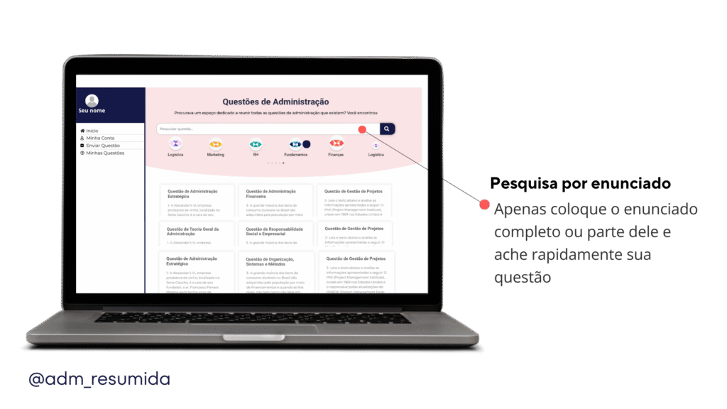Nós da @adm_resumida, depois de muito tempo produzindo resumos e mapas mentais para estudantes de administração, agora lançamos uma plataforma de questões exclusiva e feita para universitários de administração, a ADM Resumida Questões